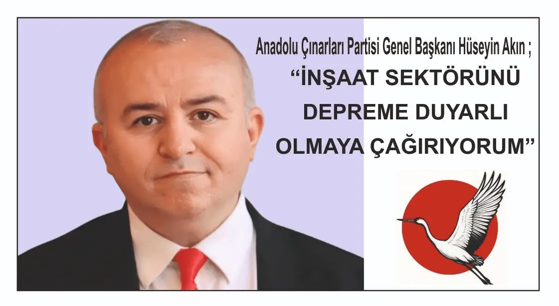 Depreme duyarlılığın yalnızca bir binayı sağlam yapmakla sınırlı olmadığını açıklayan Anadolu Çınarları Partisi Genel Başkanı Hüseyin Akın duyarlılılığın planlama aşamasından uygulamaya, malzeme seçiminden denetime, etik sorumluluktan kamu bilincine uzanan bütüncül bir yaklaşım olduğunu ileri sürdü.Partinin Genel Başkanı Hüseyin Akın, depreme olan duyarlılığın ve gündeme taşınmasının özellikle deprem sürecinde olduğuna dikkat çekerken, Deprem gerçeğinin Ülkemizde gündemden düşmemesi gereken bu konu olduğunu ve parti olarak her fırsatta depremi ve bu süreci herkese unutturmayacaklarını anlattı.Anadolu Çınarları Partisinin komisyonlarla yönetilen bir parti olduğunu Dünya ve Ülke gündemini meşgul edebilecek her konunun bir komisyonu ve bu komisyonun başkanı ile yönetimi olduğunu açıklayan parti Genel Başkanı Hüseyin Akın, deprem konusunda da çalışma yürüttüklerini, bir rapor hazırladıklarını ve hazırlanan bu raporu ilgili kamu kurum yöneticileri ile ilgililere sunacaklarını açıkladı.Anadolu Çınarları Partisi Genel Başkanı Hüseyin Akın ; “Türkiye, aktif fay hatları üzerinde yer alan bir ülkedir. Bu gerçek, her depremde bize bir kez daha hatırlatılmakta; can kayıpları, yıkımlar ve ekonomik zararlar, toplumsal hafızamıza acı izler bırakmaktadır. Depremler doğanın kaçınılmaz bir gerçeği olsa da, yıkımlar kader değildir. Bu noktada, en büyük sorumluluklardan biri inşaat sektörüne düşmektedir. Zira bir ülkenin depreme dayanıklılığı, yalnızca jeolojik konumuna değil, yapı kalitesine ve mühendislik bilincine bağlıdır.” dedi.Depreme duyarlı bir inşaat sektöründe Sadece “nasıl daha ucuz bina yapılır” sorusunu değil, “Nasıl daha güvenli, sürdürülebilir ve insan hayatını koruyan yapılar inşa edilir” sorusunu cevaplamak gerektiğini anlatan Parti Genel Başkanı Hüseyin Akın “Bu bakış açısı, inşaatı ticari bir faaliyet olmaktan çıkarır, insan hayatına hizmet eden bir meslek ahlakı haline getirir.” açıklamasını yaptı.Güvenliğin İlk Basamağının Planlama ve Zemin Etüdü olduğunu bildiğini söyleyen Başkan Hüseyin Akın, “Her depremin ardından aynı hatalarla yüzleşiyoruz, Yanlış zemin seçimi, eksik jeolojik etütler, imar rantı uğruna riskli alanlara verilen izinler, Depreme duyarlı bir inşaat anlayışının olamayışının en büyük gerçeğidir. Olması gereken ise İnşaatta projenin en başında başlar. Bu neden den dolayı Zemin etüdü bilimsel verilere dayandırılmalı, Yer seçimi rant değil, güvenlik temelli olmalı, Kentsel planlama ise uzun vadeli bir stratejiyle ele alınmalıdır.” şeklinde konuştu.“Bir ülke, inşaat sektörünü bu bilinçle yönlendirebildiği ölçüde felaketlerin önüne geçebilir.” diyen Akın, Depreme dayanıklı yapılar, yalnızca güçlü betonlarla değil, doğru mühendislikle inşa edilir. Projelerin çiziminden uygulamasına kadar her aşama, bilimsel kriterlere uygun olmalıdır. Malzeme kalitesi denetlenmeden sahaya sürülmemeli, Yapı denetimi bağımsız ve tarafsız olmalı, Mühendis ve mimar sorumluluğu, imza atmaktan öteye geçmelidir. Depreme duyarlı bir mühendislik anlayışı, “şartnameyi doldurmak” değil, “hayat kurtarmak” için çalışır.”ifadelerini kullandı.Etik Sorumluluk ve Toplumsal Bilincin önemine de dikkat çeken, Parti Başkanı Hüseyin Akın “Depreme dayanıklı yapı üretmek sadece teknik değil, ahlaki bir sorumluluktur.İnşaat sektöründeki her birey —müteahhitten ustaya kadar— elindeki harcın insan hayatını taşıdığını bilmelidir. Devletin rolü ise, denetim mekanizmalarını şeffaflaştırmak ve cezasızlık kültürünü sonlandırmak olmalıdır. Bir ülkede “malzemeden çalmak” ya da “raporla oynamak” gibi davranışlar cezalandırılmıyorsa, depreme duyarlılıktan söz etmek mümkün değildir. Toplumun her kesiminde, özellikle de genç mühendislerde, “ahlaklı inşaat” kültürü yerleşmelidir.” dedi.Hüseyin Akın, “Depreme duyarlı inşaat anlayışı, aynı zamanda geleceğe duyarlı şehircilik demektir. Akıllı kent teknolojileri, yapı sensörleri, sürdürülebilir malzeme kullanımı ve enerji verimliliği gibi uygulamalar, geleceğin güvenli şehirlerinin temelidir. Depremle birlikte yaşamayı öğrenmek, korkuyu değil bilinci büyütmektir. Her bina, her köprü, her konut; “doğanın gücüne saygı, insanın emeğine güven” ilkesiyle yükselmelidir. Depremler doğaldır; yıkımlar insan kaynaklıdır. Bir ülke, depreme duyarlı bir inşaat kültürü inşa edebildiği ölçüde, geleceğini güvence altına alır. Betonun dayanıklılığı kadar vicdanın sağlamlığı da önemlidir. Unutmayalım: Depreme dayanıklı bina yapmak, mühendisliktir; Depreme duyarlı olmak ise insanlıktır.” diyerek sözlerini tamamladı.